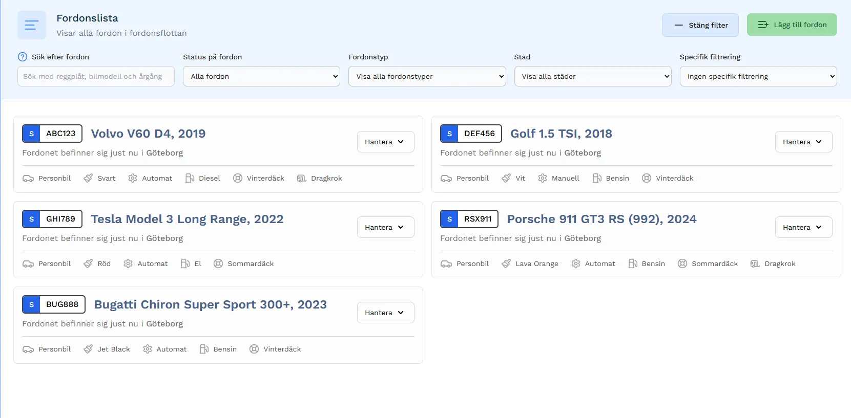 Fordonshanteringen anpassas till hur er biluthyrning faktiskt fungerar.